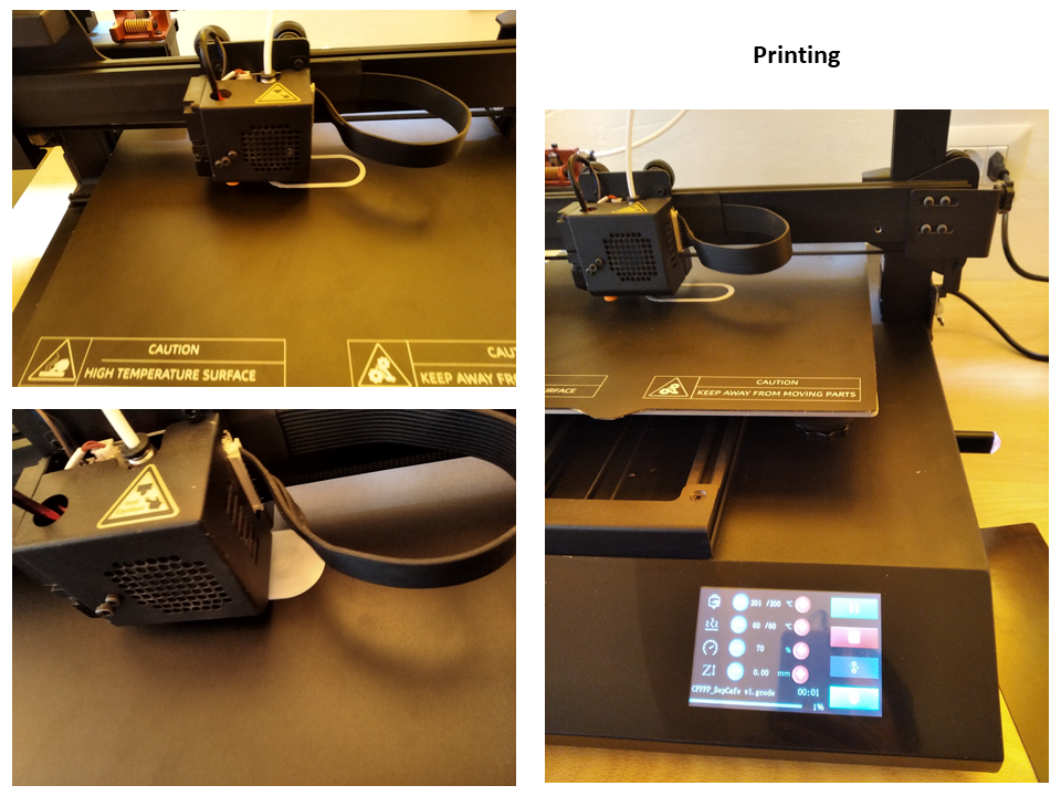The extruder was heated to 200 °C and the hot bed to 60 °C to work with PLA filament.