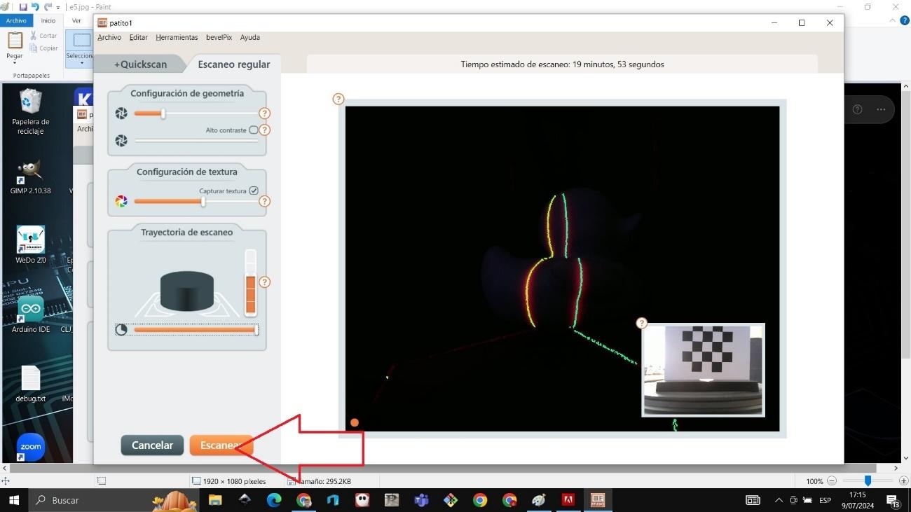Therefore, I reconfigured the scanner by adjusting parameters such as exposure and capture sensitivity, which allowed me to improve the definition of the edges.