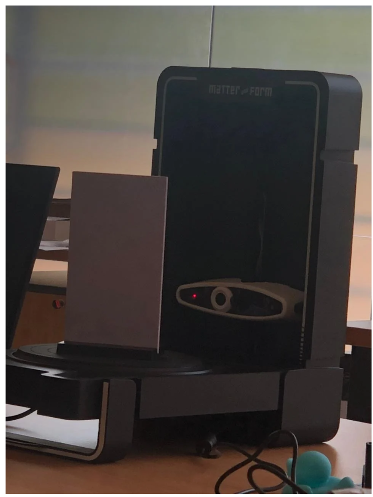 For the scanning process I used the Matter and Form 3D scanner along with the MFStudio software, which allows direct communication between the hardware and the laptop.