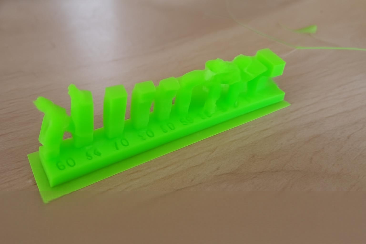 Overhang test (angles from 30° to 75°)