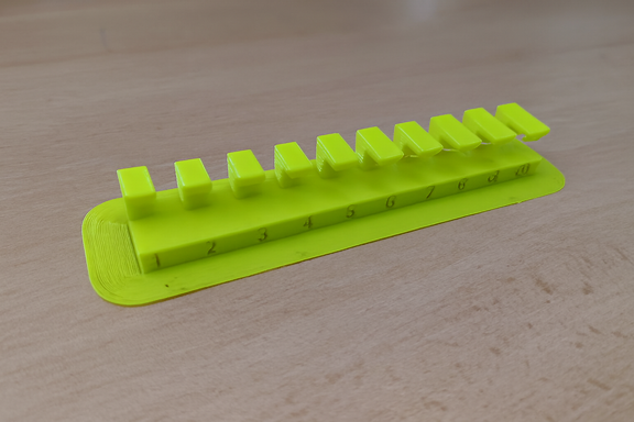 A steeply tilted model was printed to assess the need for support.
