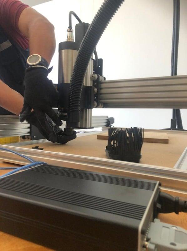 From the extensions menu we choose the milling machine and then we generate the milling gcode