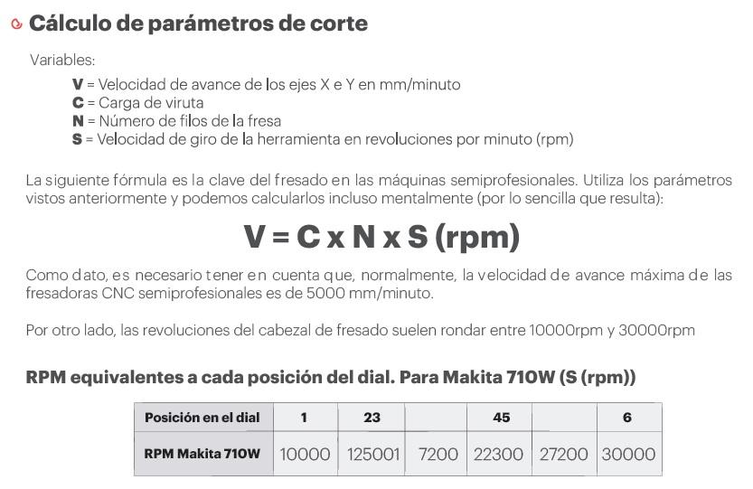 For its configuration we must consider the cutting parameters recommended by the manufacturer: