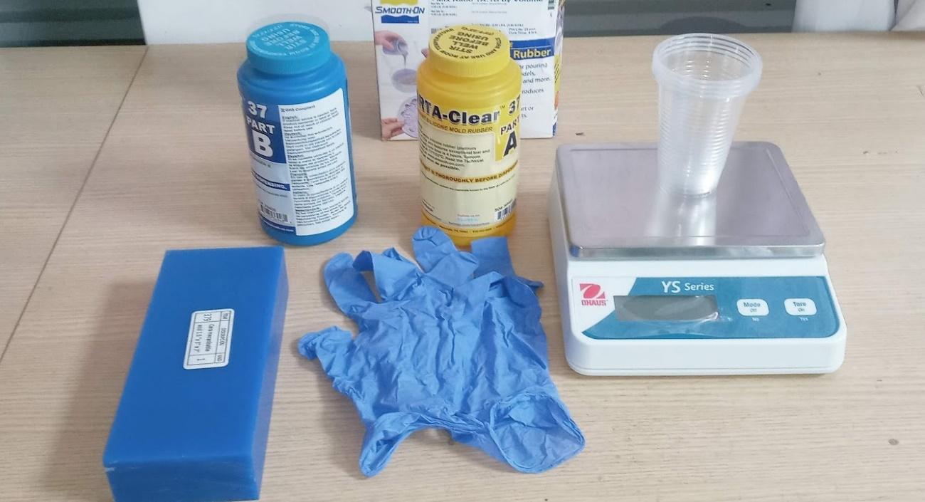 To create the flexible mold, two silicone components were used that were mixed in equal proportions.